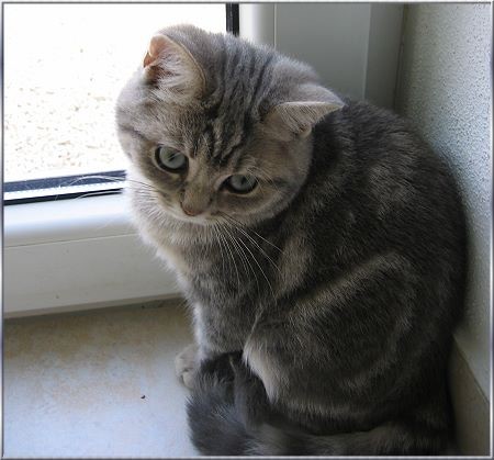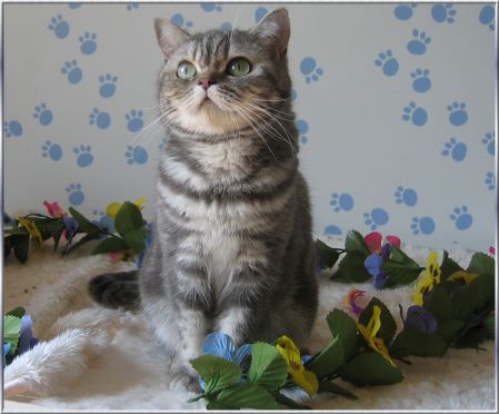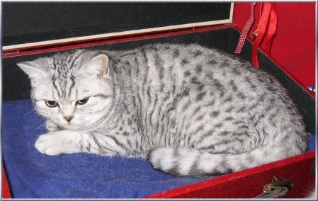silberne Katze. Sie hat einen schönen runden Kopf mit
